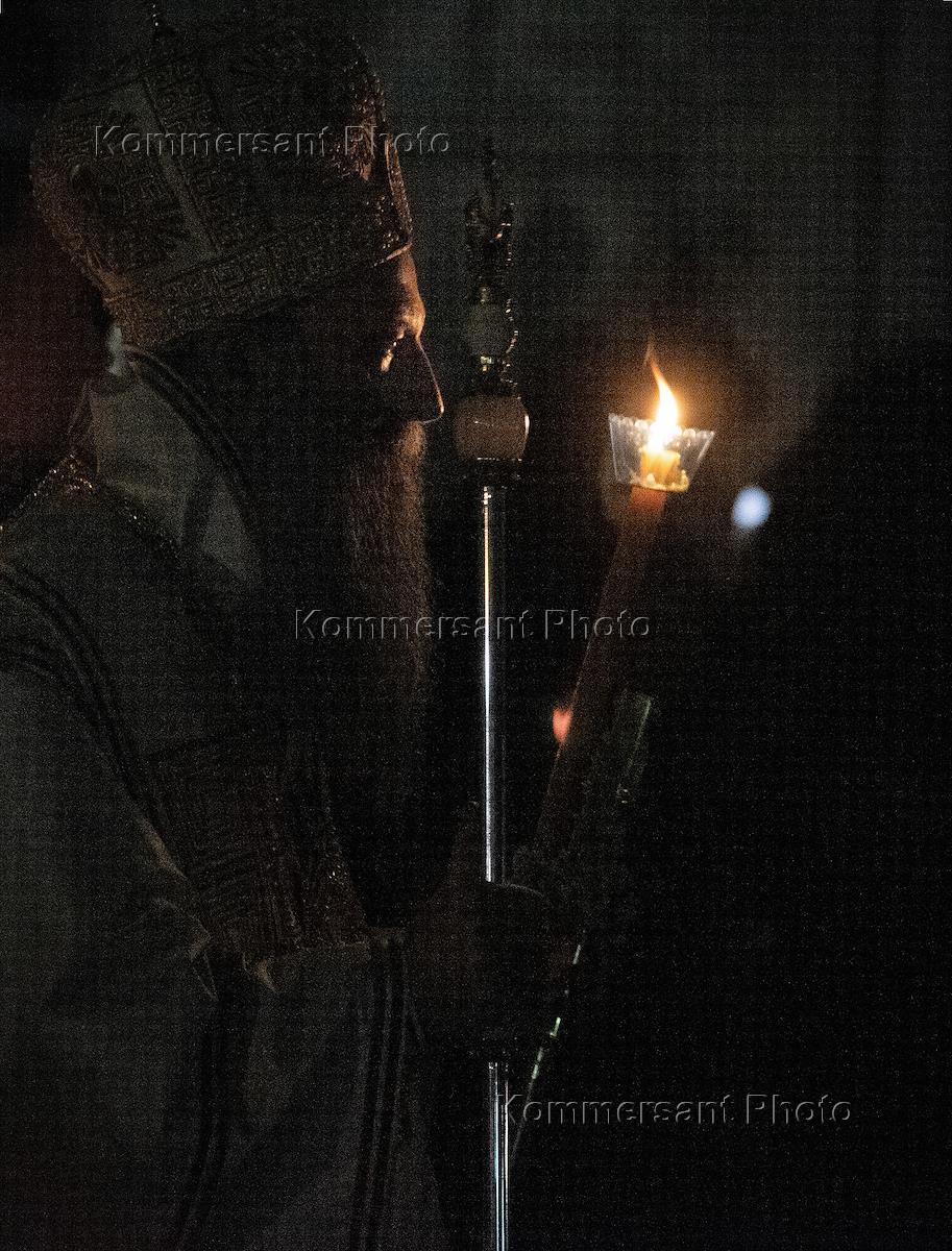 Праздничное Пасхальное богослужение в соборе Святого Саввы в Белграде. Священнослужители во время…