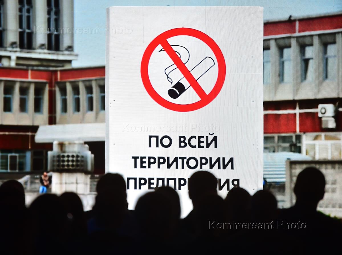 Жанровая фотография. Плакат о запрете курения по всей территории предприятия.