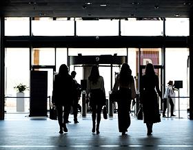 Российский международный энергетический форум (РМЭФ) 2023. Жанровая фотография. Силуэты девушек,…