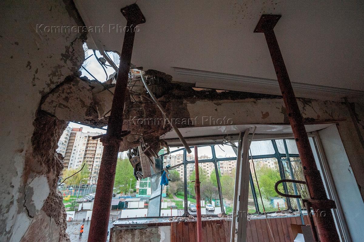 Ситуация в Белгороде после обнаружения второго неразорвавшегося снаряда. Выбитая часть стены в доме…