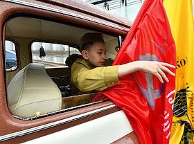 Старт ретроралли "Автопробег Победы", организованного партией "Единая Россия" на площади перед главным зданием Музея Победы на Поклонной Горе.