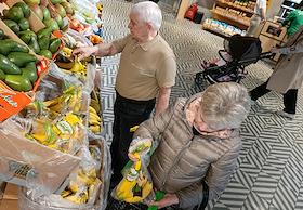Магазин сети "Пятерочка" на улице Варшавской. Жанровая фотография. Покупатели в торговом зале.