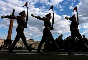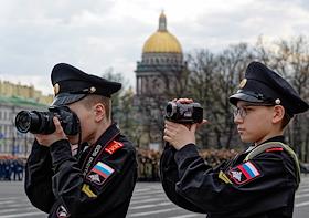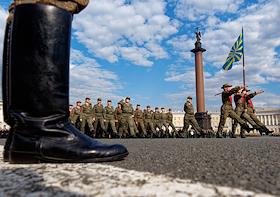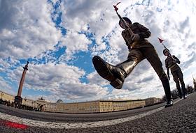 Репетиция военного парада на Дворцовой площади, посвященного 78-ой годовщине Победы в Великой Отечественной войне.