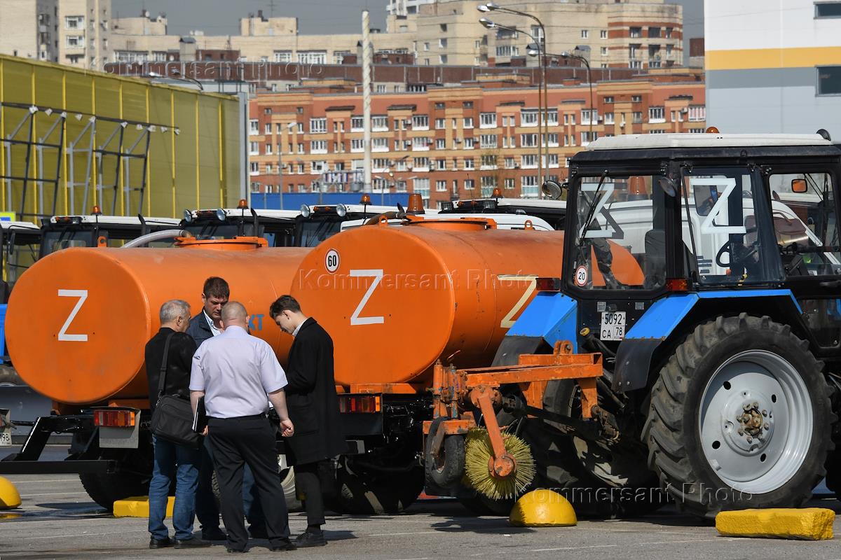 Традиционный весенний смотр уборочной техники в Приморском районе на парковке торгового комплекса на…