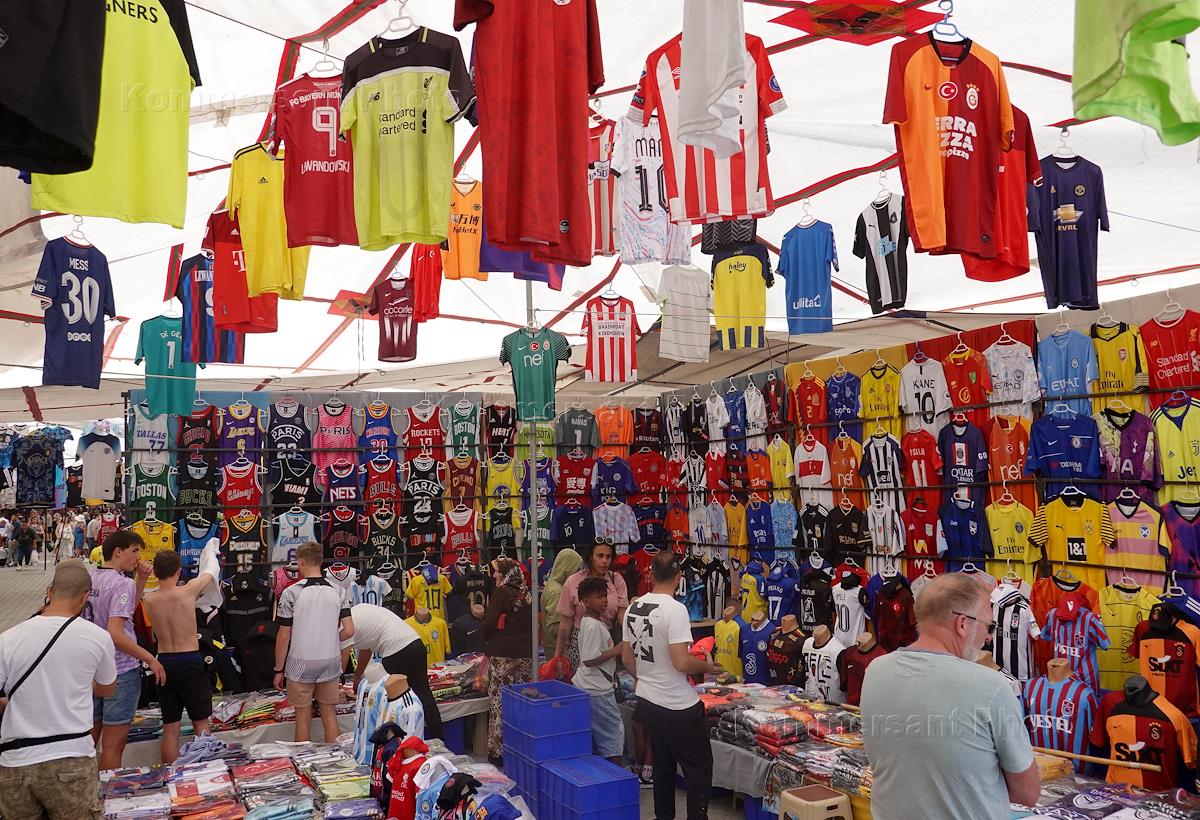 Жанровая фотография. Центральный рынок Cuma Pazari. Торговые ряды с одеждой.