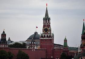 Виды Москвы. Жанровая фотография. Кремль. Спасская башня и купол Сенатского дворца. Знак "Беспилотная зона".