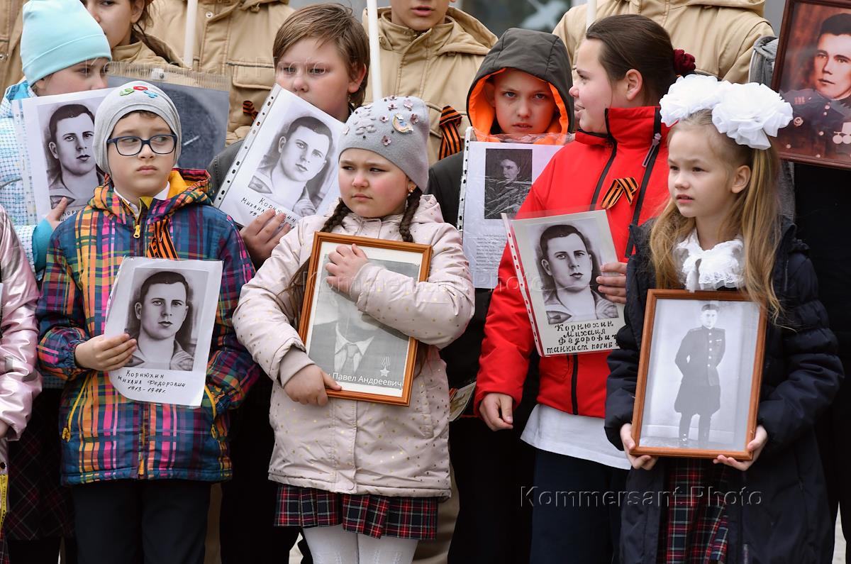 Проведение урока "Бессмертного полка", посвященного Дню Победы, в городской школе № 7. Учащиеся…