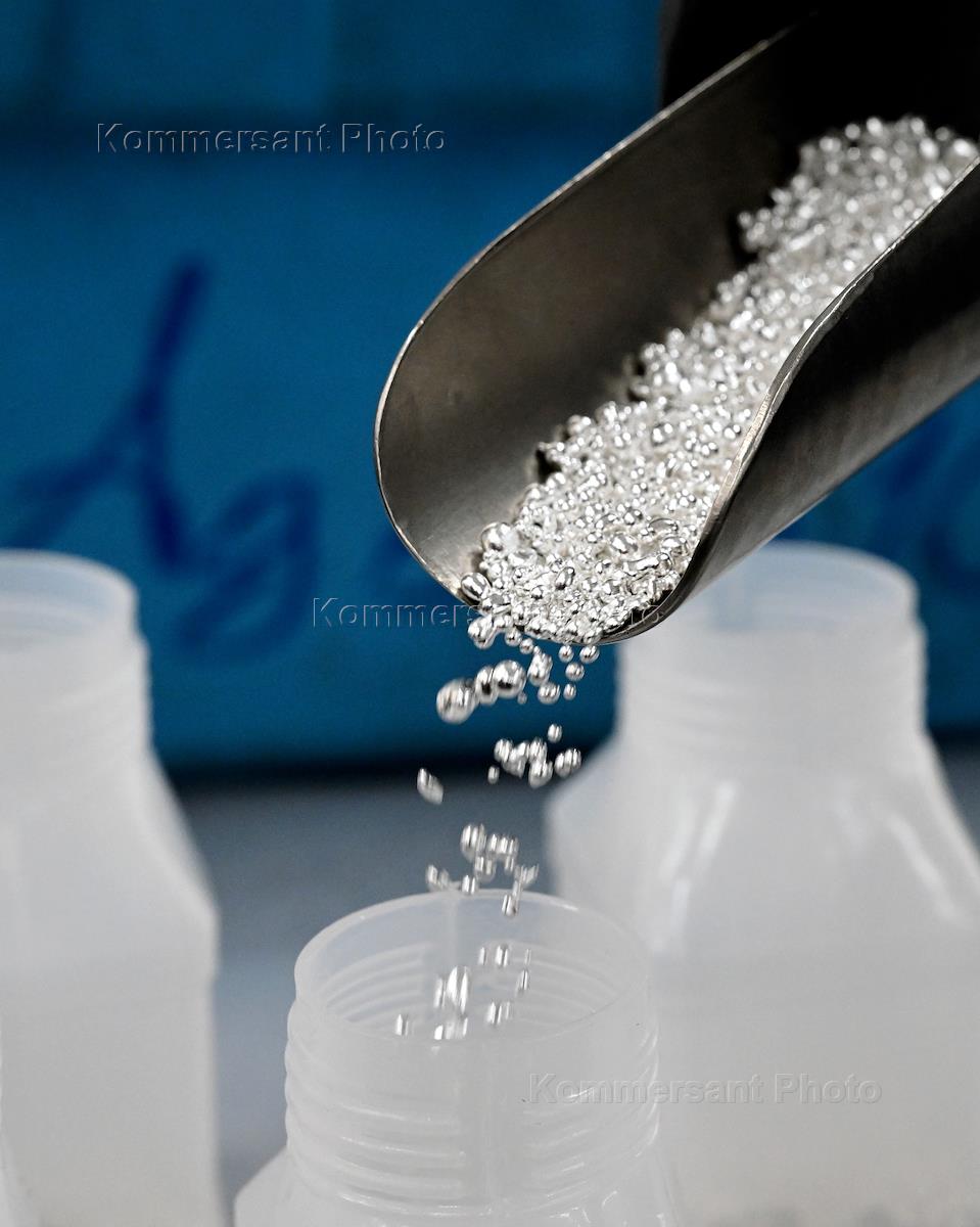 ОАО "Красноярский завод цветных металлов им. В.Н. Гулидова" ("Красцветмет"). Рабочий разливает…