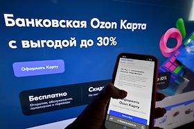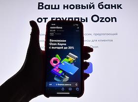 Жанровая фотография. Приложение "Озон банка" (банк OZON) на экране мобильного телефона.