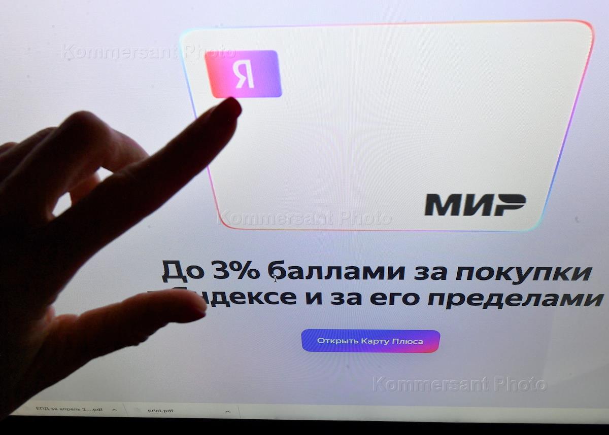Онлайн Яндекс Банк. Жанровая фотография. Цифровая карта "Мир" с кешбэком баллами Плюса на экране…