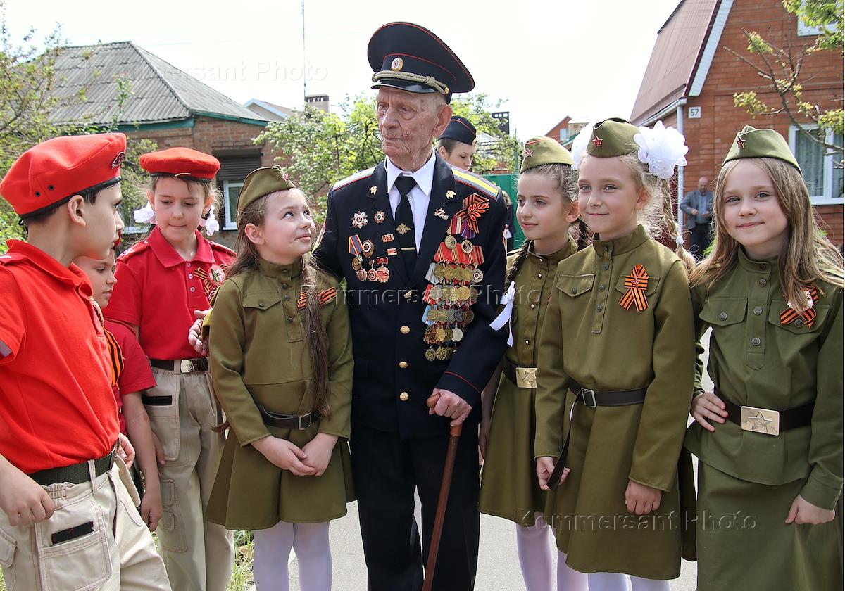 Акция "Парад у дома Ветерана" в преддверии 78-й годовщины Победы в Великой Отечественной войне. Дети…
