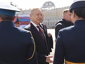 Парад в честь 78-й годовщины Победы в Великой Отечественной Войне на Дворцовой площади. Губернатор…
