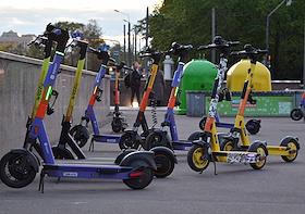Жанровая фотография. Электросамокаты компании "Юрент" на парковке проката.