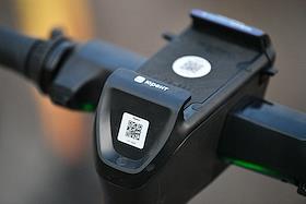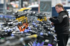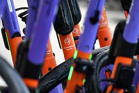 Жанровая фотография. Электросамокаты компании "Юрент" на парковке проката.
