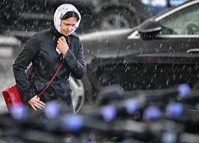 Виды Москвы во время дождя. Жанровая фотография. Девушка идет под дождем без зонта.