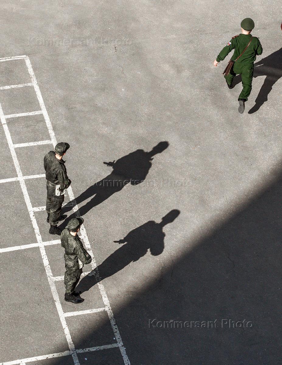 Занятия по строевой военной подготовке в военно-учебном центре Санкт-Петербурга. Жанровая фотография.