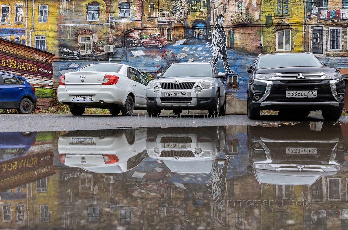 Виды Уфы. Жанровая фотография. Граффити во дворе дома Сергея Довлатова.