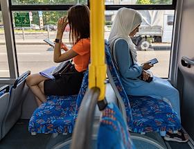Жанровая фотография. Девушки в троллейбусе со смартфонами.