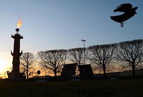 Виды Санкт-Петербурга. Ростральная колонна на Стрелке Васильевского острова и крылья разведенного…