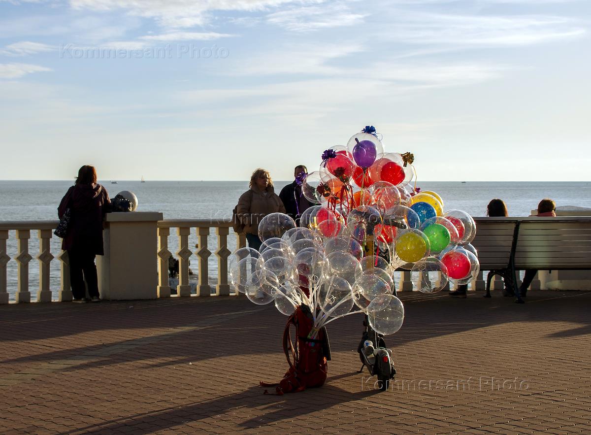 Виды Сочи. Жанровая фотография. Торговля воздушными шариками на набережной города.