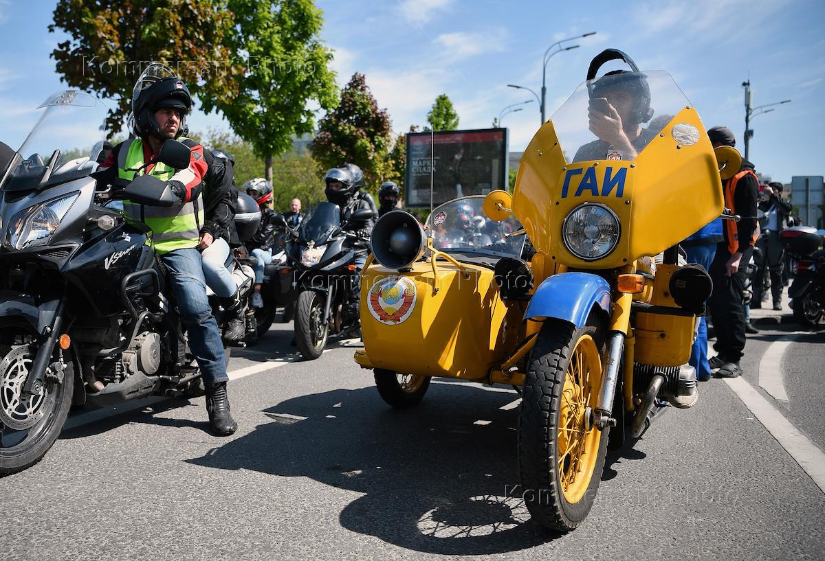 Московский весенний мотофестиваль в честь открытия мотосезона. Участники мотопарада во время проезда…