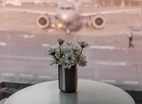 Международный аэропорт Пулково имени писателя Федора Достоевского. Букет цветов на столике в зале…