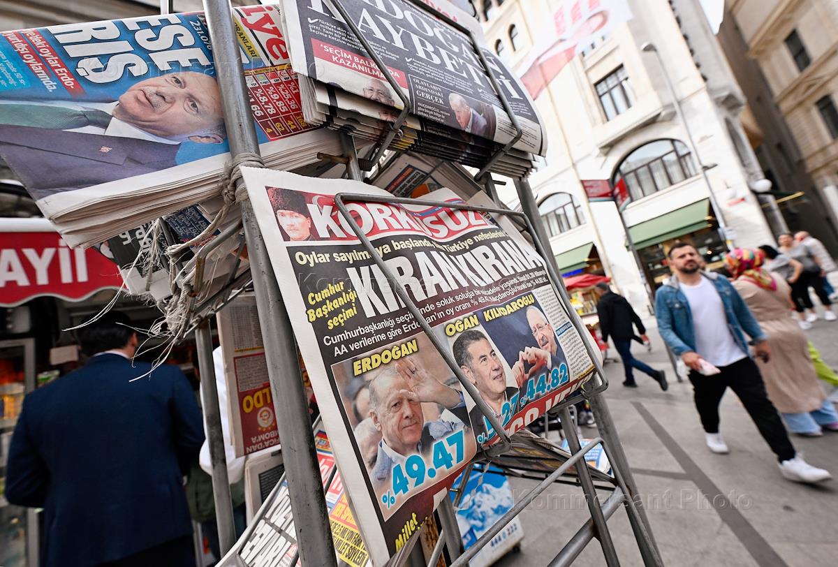 Виды Стамбула после первого тура выборов президента Турции. Жанровая фотография. Газеты с итогами…