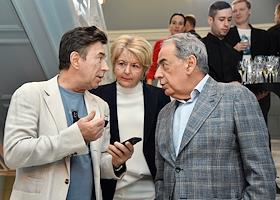 Церемония открытия пространства "Проект Худсовет" в Театре на Бронной. Певец Валерий Сюткин (слева)…