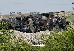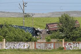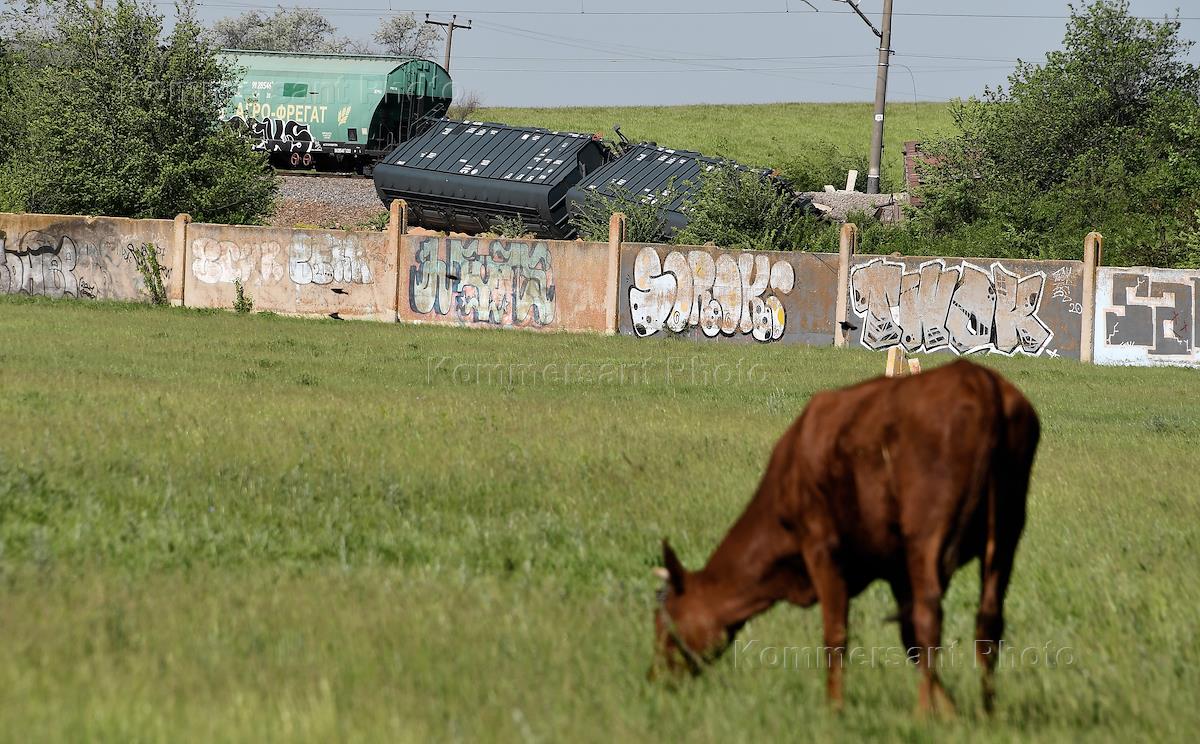 Вагоны с зерном, сшедшие с рельсов на перегоне между станциями Почтовое и Чистенькое. Движение…