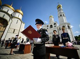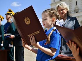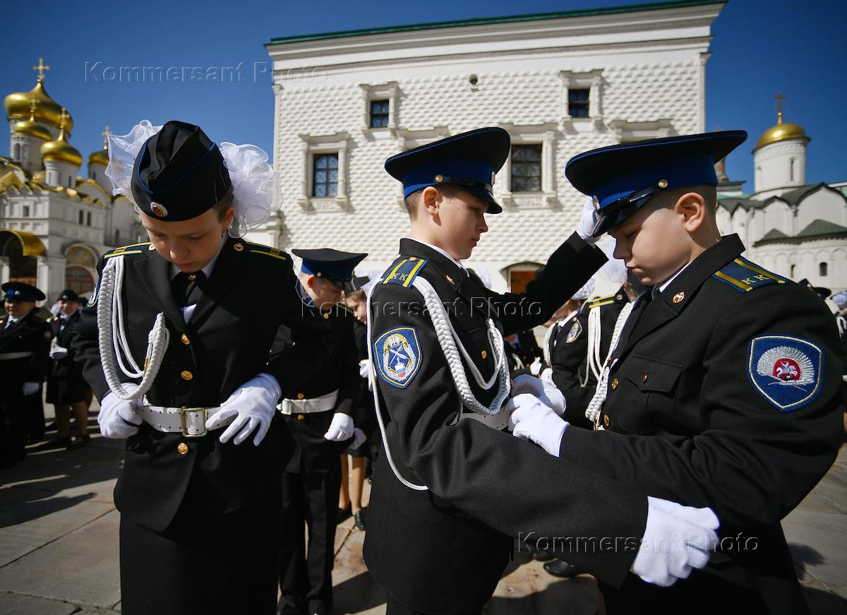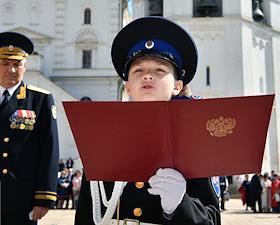 Церемония приведения к торжественным клятвам учащихся кадетских и юнармейских классов ФСО России на Соборной площади Московского Кремля.