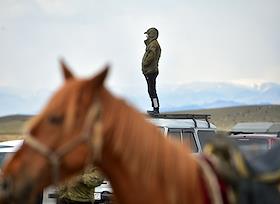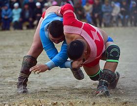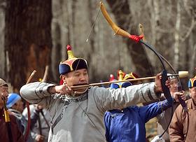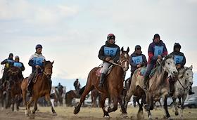 Жанровые фотографии. Соревнования по национальному тувинскому троеборью: национальная борьба "Хуреш", "Конные скачки", и национальная стрельба из лука близ села Кызыл-Мажалык Барун-Хемчикского кожууна (района) Республики Тыва.
