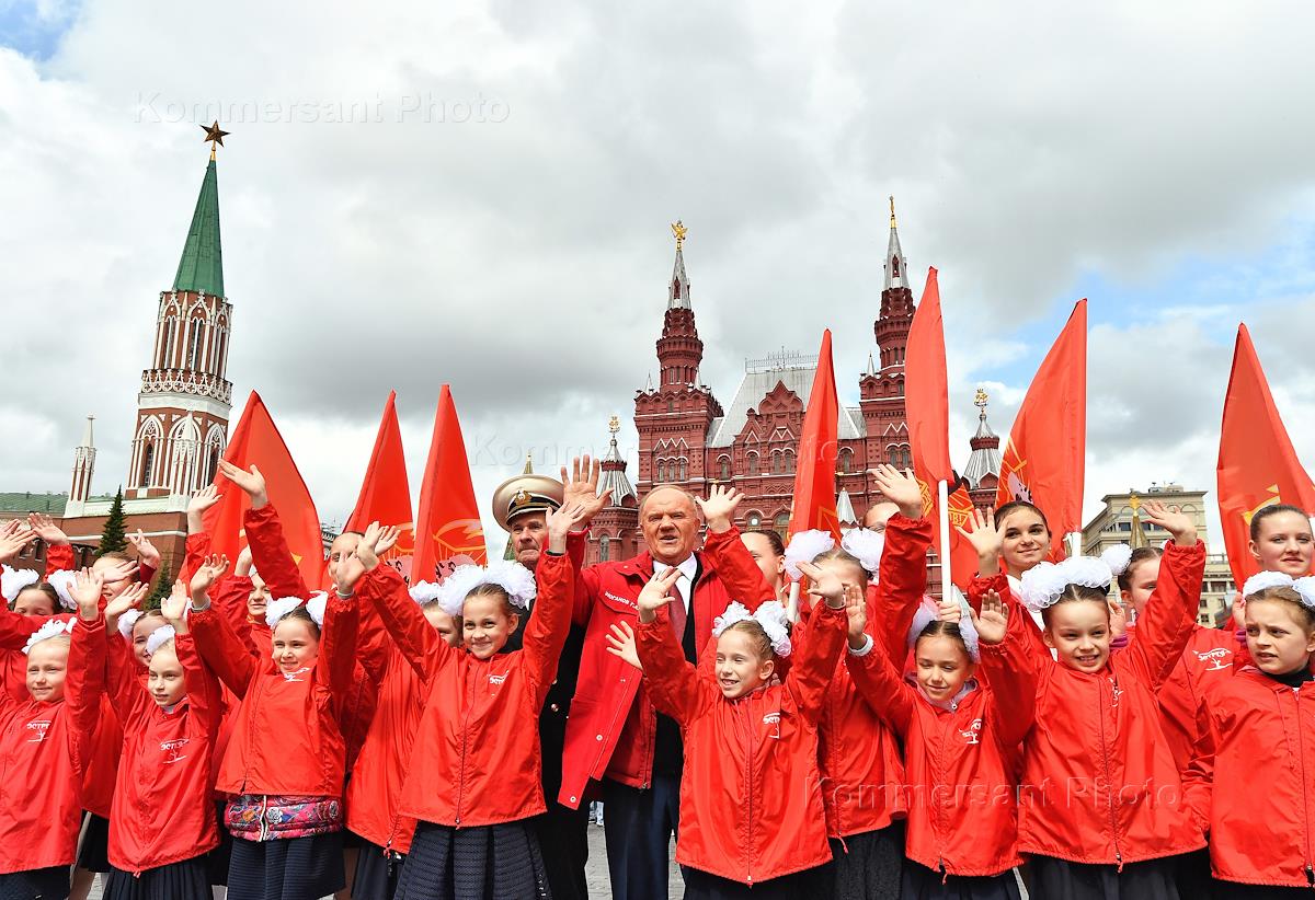 Торжественная церемония приема в пионеры на Красной площади. Председатель Центрального комитета…