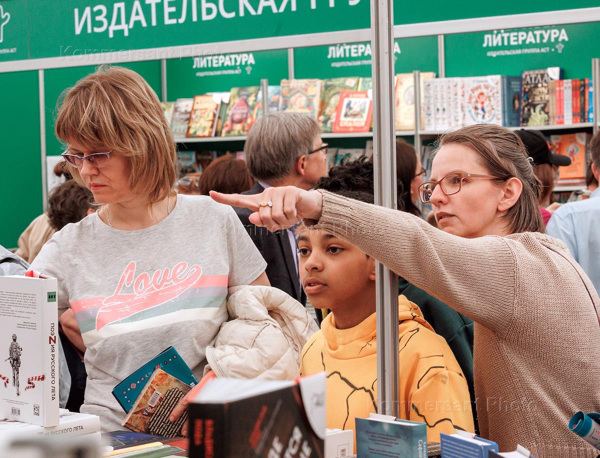XVIII Международный Санкт-Петербургский Книжный салон на Дворцовой площади. Посетители книжного…