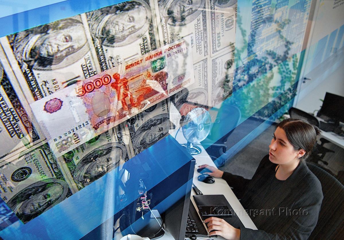 Работа финансовой компании ПАО "СПБ Биржа" в башне "Меркурий". Жанровая фотография. Сотрудник во…