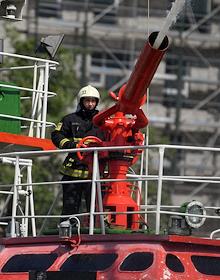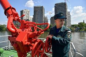 Происшествия и конфликты Пресс-тур Главного управления МЧС России по городу Москве на пожарном корабле "Надежда" в акватории Москвы-реки в преддверии Дня пожарной охраны города Москвы.
