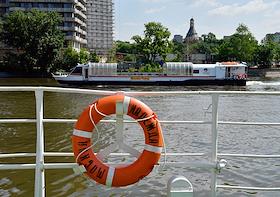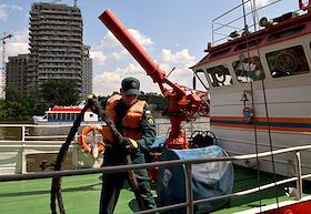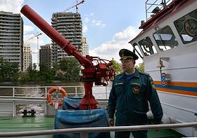 Пресс-тур Главного управления МЧС России по городу Москве на пожарном корабле "Надежда" в акватории…