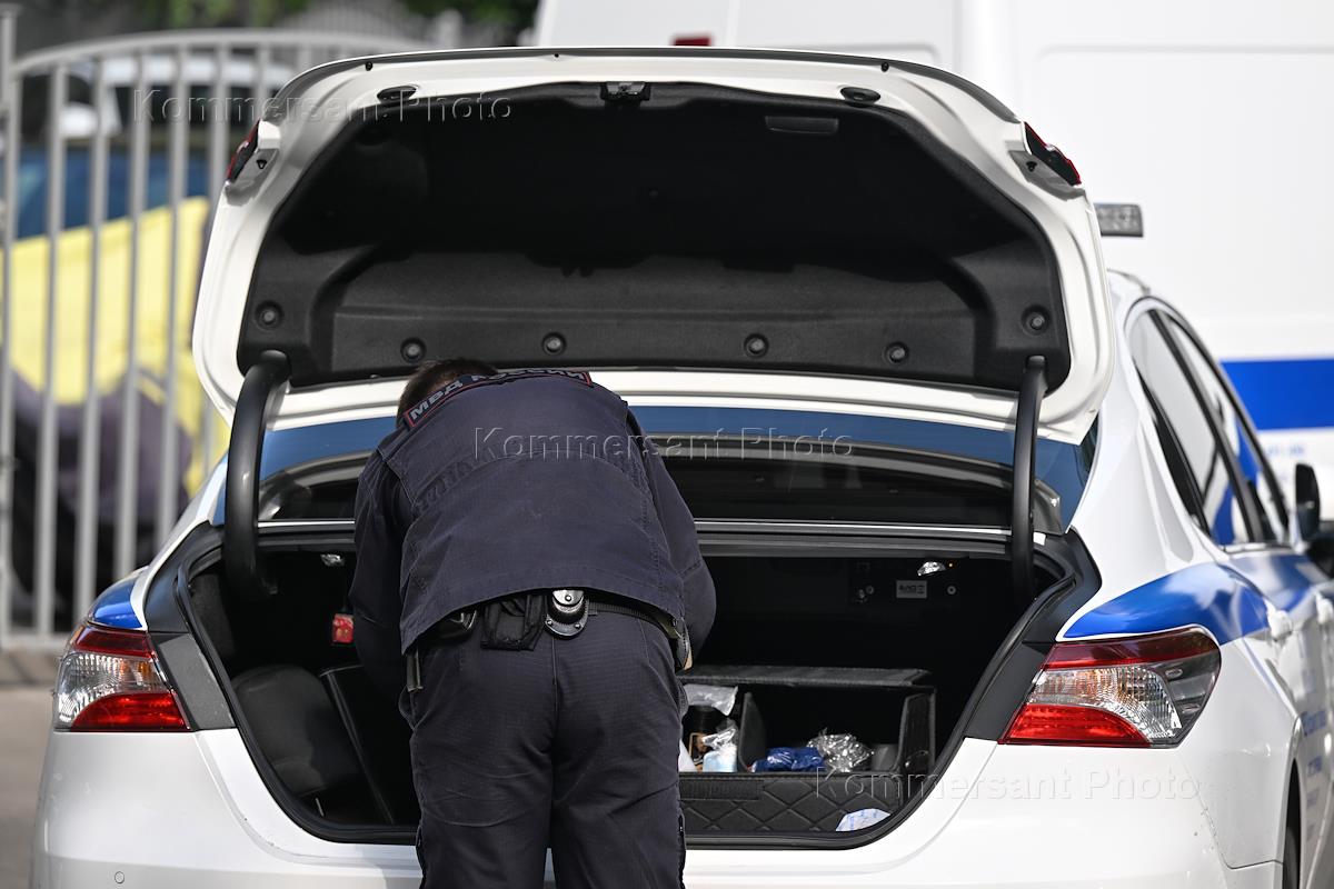 Последствия атаки беспилотника по адресу Ленинский проспект дом 92, корпус 1. Сотрудник ДПС у жилого…