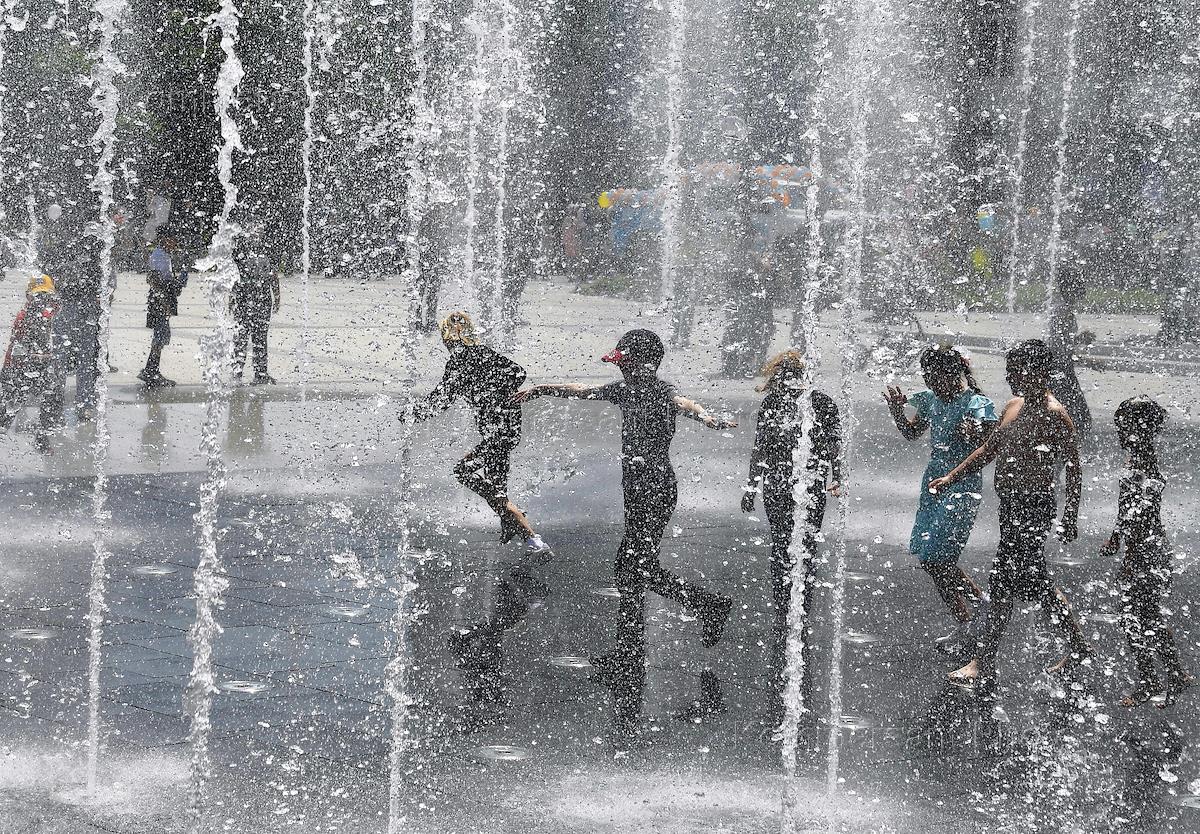 Жанровая фотография. Дети купаются в фонтане в международный День защиты детей.