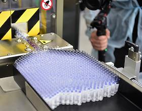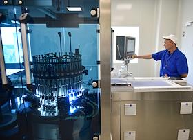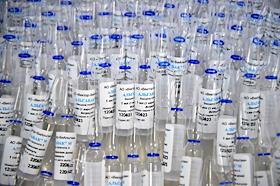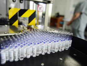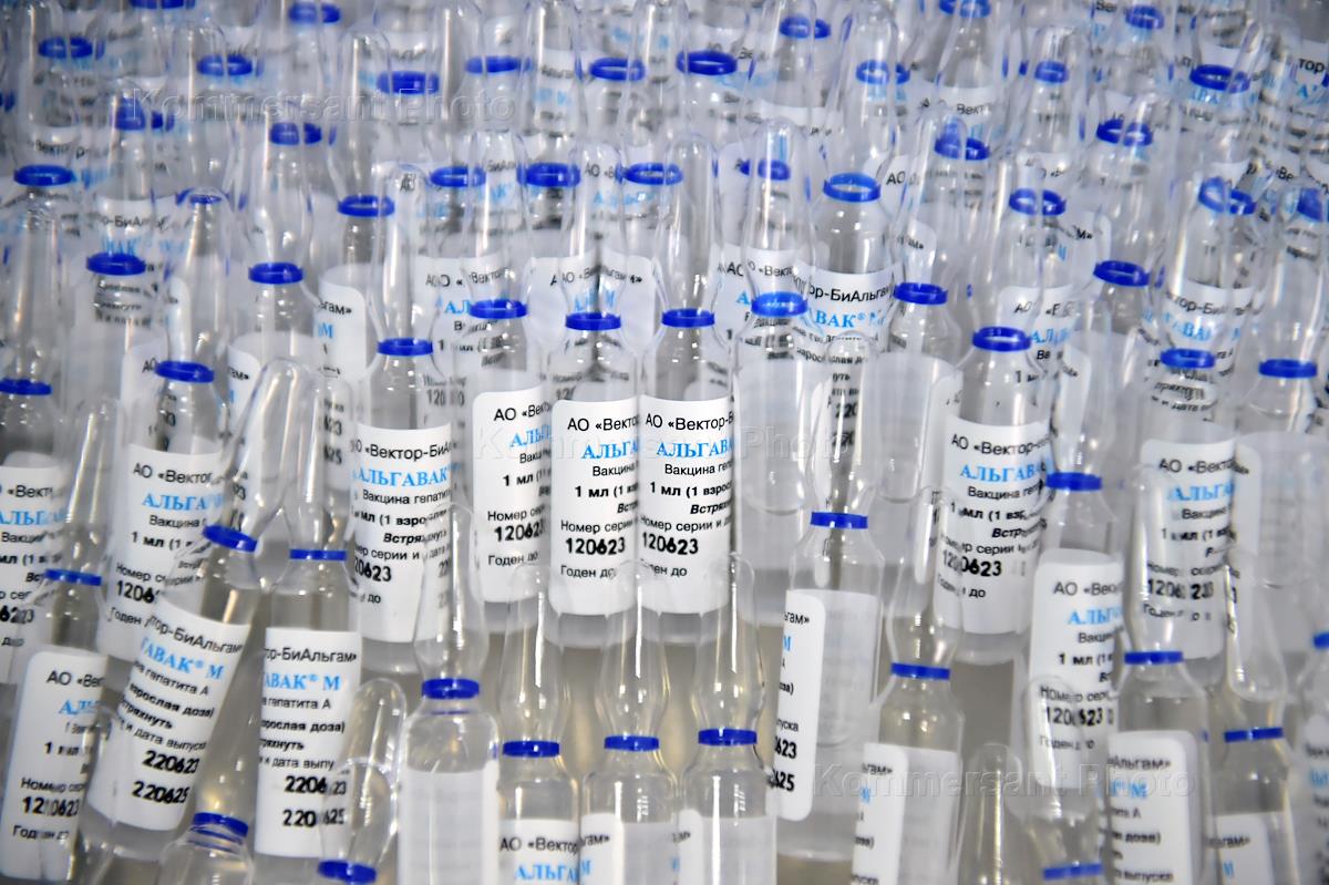 Медицина Производство вакцин в Новосибирской области. Ампулы с вакциной "Альгавак" для профилактики вирусного гепатита А на предприятии АО "Вектор-БиАльгам" в наукограде Кольцово Новосибирской области.