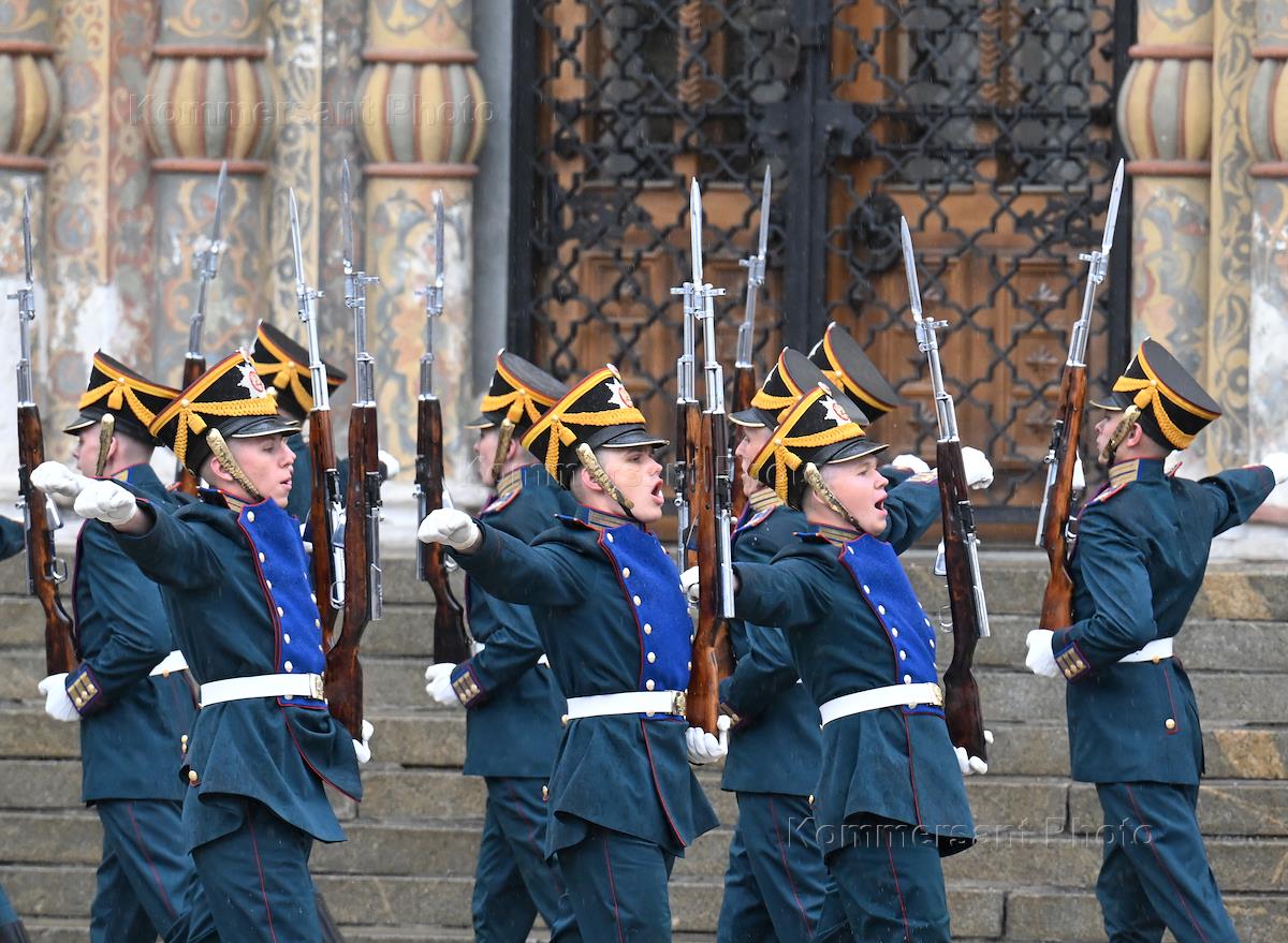 Политика Церемония развода пеших и конных караулов Президентского полка Службы коменданта Московского Кремля Федеральной службы охраны (СКМК ФСО) России на Соборной площади Московского Кремля.