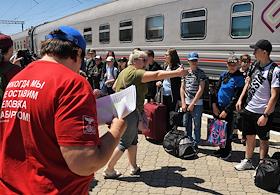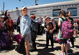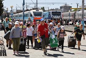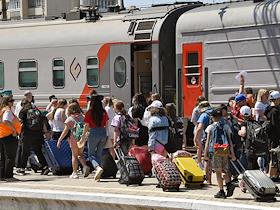 Общество Первая группа детей из приграничных территорий Белгородской области, а также детей участников СВО — контрактников, мобилизованных, прибыла на отдых в Крым в санаторий "Бригантина "Белогорье" в Евпатории. Санаторий для детей и детей с родителями "Бригантина" был безвозмездно передан Белгородской области. Участники первой смены на железнодорожном вокзале Евпатории.