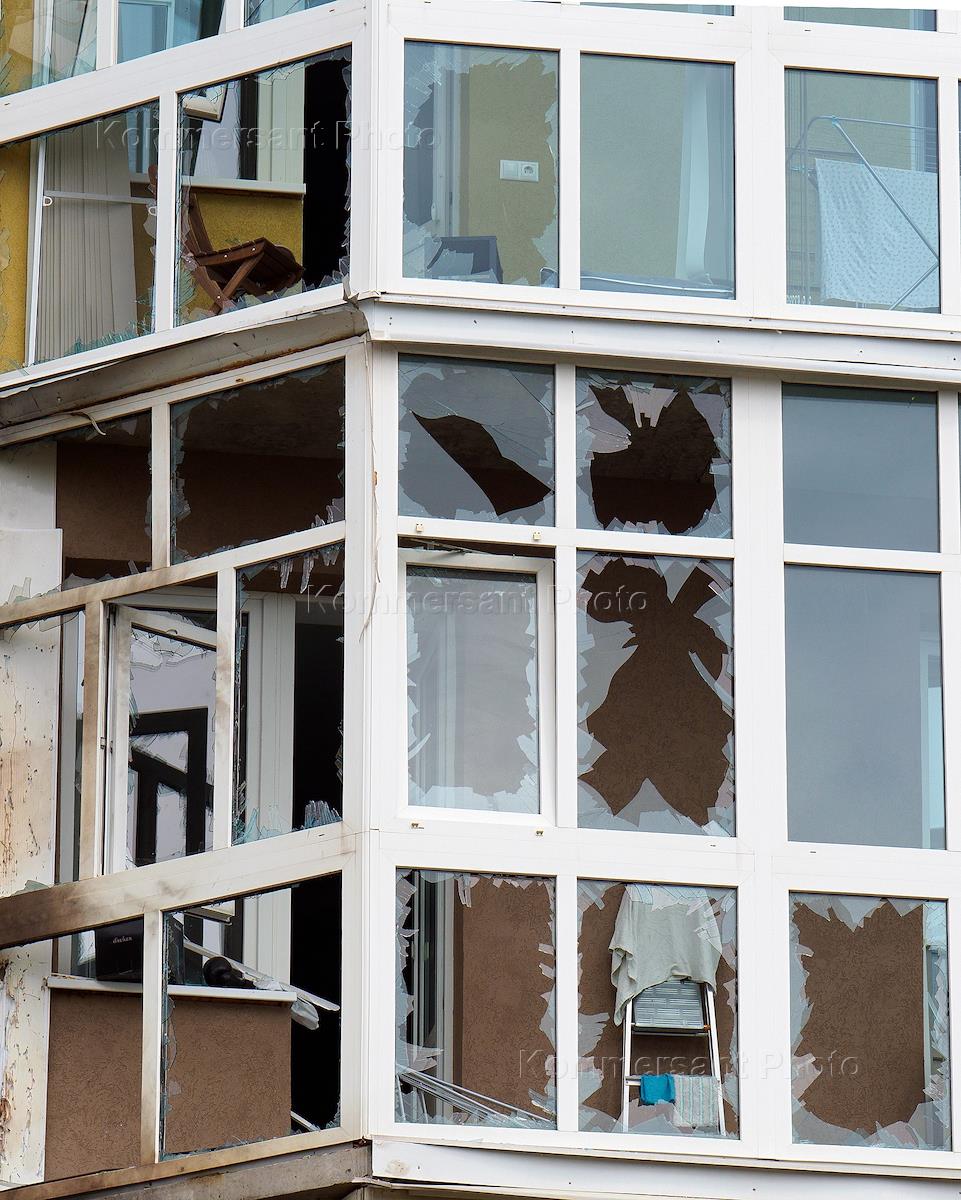 Последствия попадания беспилотного летательного аппарата (БПЛА) в жилой дом на улице Белинского, в…
