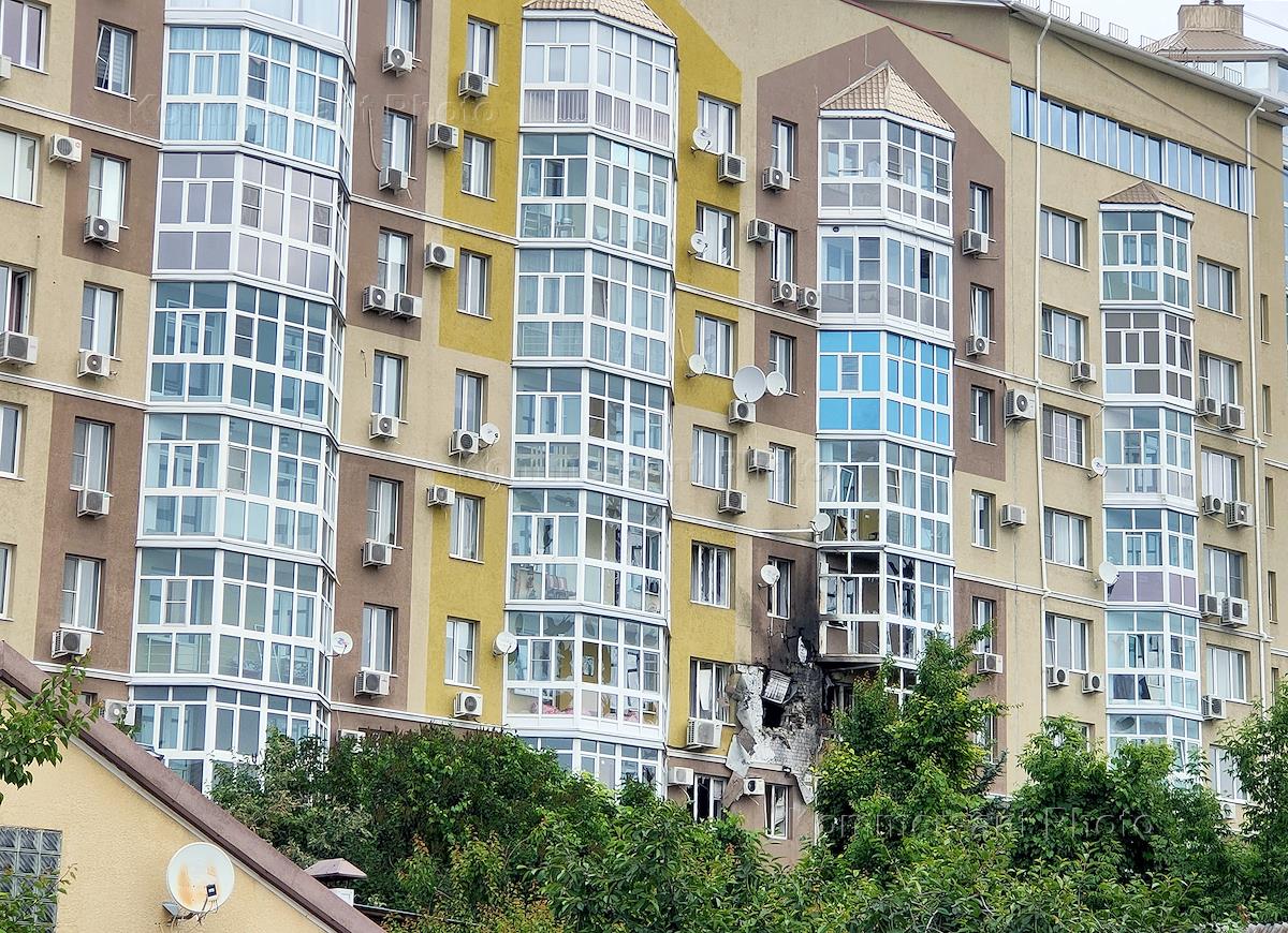 Последствия попадания беспилотника в жилой дом на улице Белинского в Воронеже.