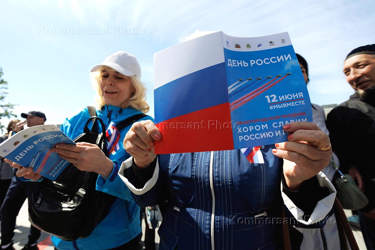 Акция «Хором славим Россию и город», посвященная празднованию Дня России в Екатеринбурге.