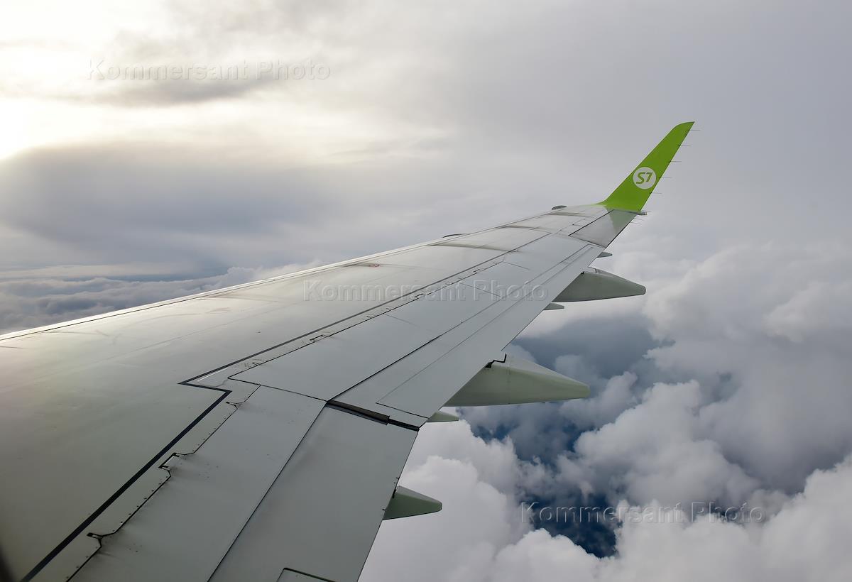 Жанровая фотография. Вид из иллюминатора самолета авиакомпании S7 Airlines.