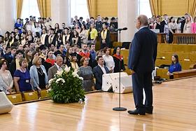 Образование Церемония вручения дипломов с отличием выпускникам Московского государственного университета (МГУ) имени М.В.Ломоносова в главном здании МГУ.