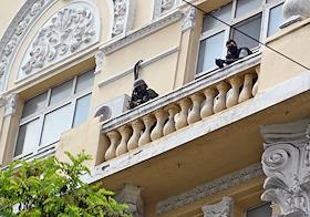 Ситуация в Ростове-на-Дону. Военнослужащие на балконе здания Штаба Южного военного округа на…