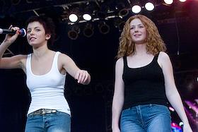 Участницы группы "Тату" Елена Катина (справа) и Юлия Волкова (слева) во время выступления на…