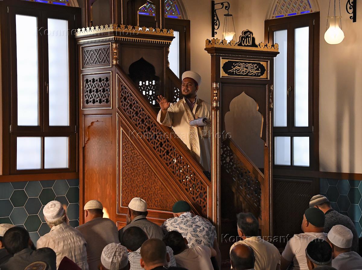 Праздник жертвоприношения Курбан-Байрам в Крыму. Верующие во время молитвы в мечете "Корбек Джами" в…