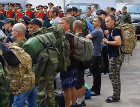 Церемония отправки добровольцев, поступивших на военную службу по контракту, к местам несения службы…
